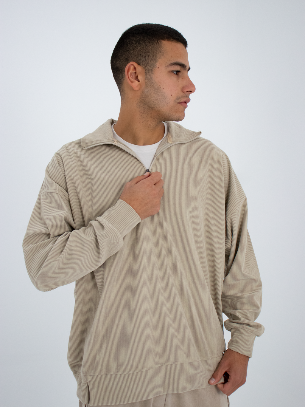 Beige Quarter Zipper